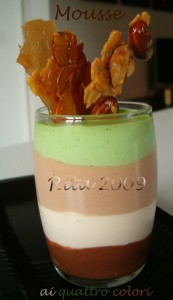 Mousse ai quattro colori con cialdine croccanti alle mandorle