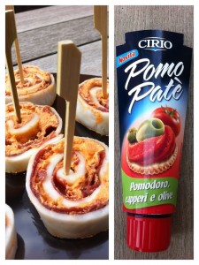Per la mia prima ricetta io ho scelto Cirio Pomopatè alle olive e capperi ed ho realizzato delle girelle di mozzarella farcite con bresaola,formaggio spalmabile e il Pomopatè.