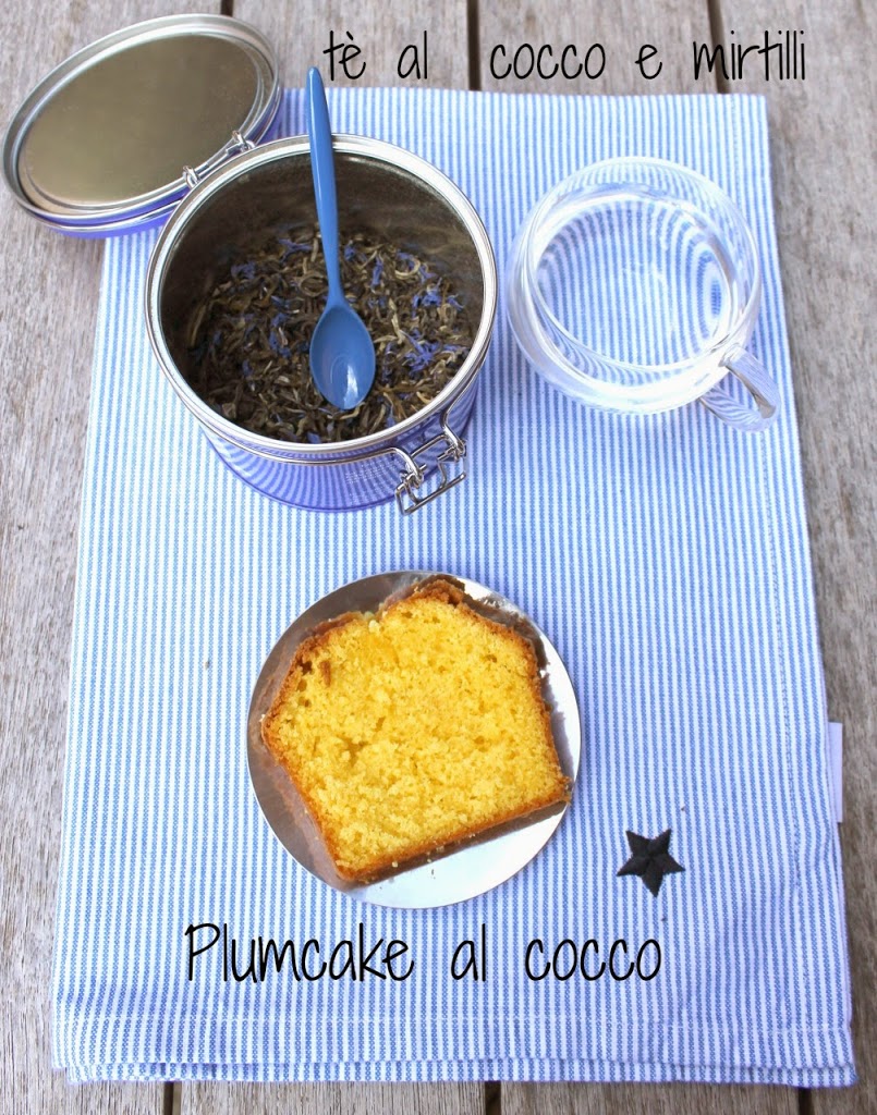 Se siete delle amanti del cocco potete accompagnare nella vostra colazione o merenda una fetta del plumcake con una tazza di tè aromatizzato al cocco,nel mio caso si trattava di tè bianco,mirtilli,fiori di fiordaliso e cocco.