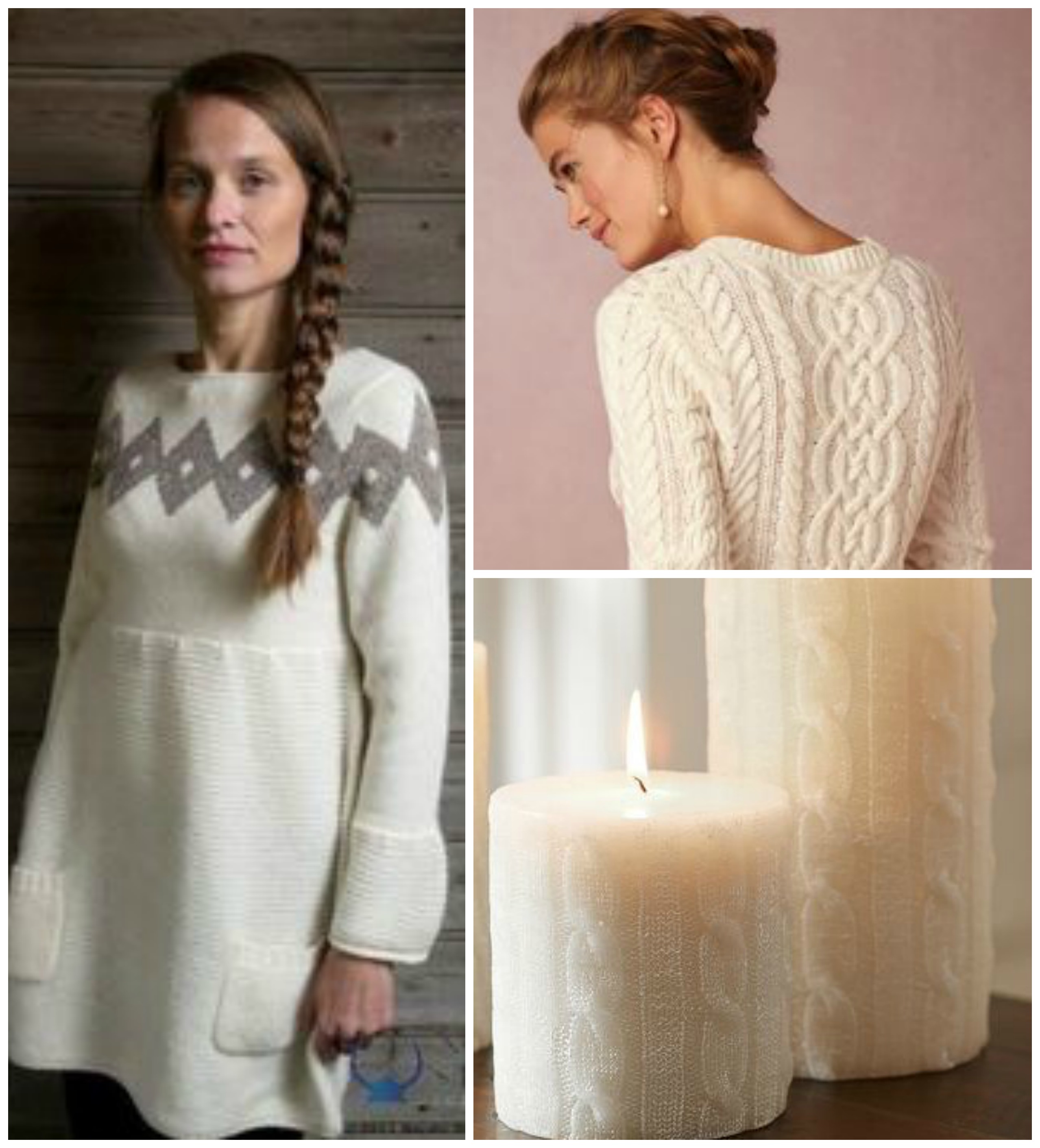 Se fossi ospiti opterei per un abito bianco in lana in stile nordico e come regalo alla padrona di casa porterei una candela bianca.